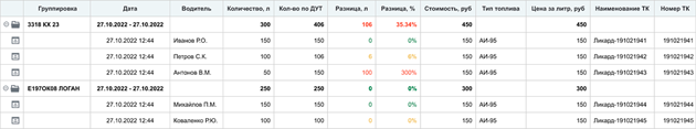 Кроме объема топлива указывается его стоимость и местоположение заправочных станций, что также упрощает анализ данных.