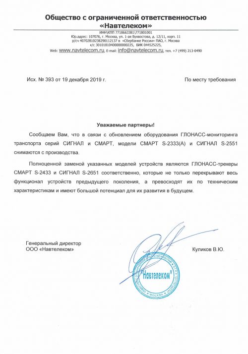 Обновление коснулось серий оборудования СМАРТ и СИГНАЛ, поэтому модели СМАРТ S-2333(A) и СИГНАЛ S-2551 снимаются с производства.