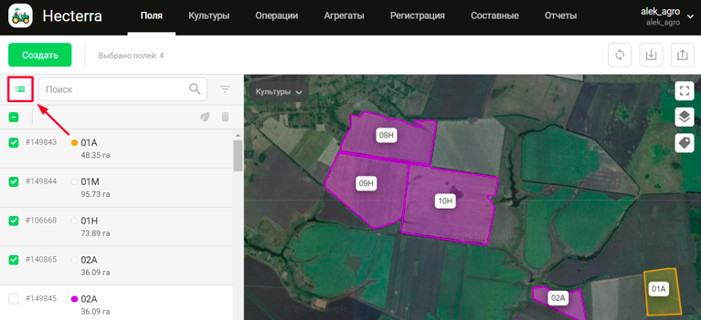 В приложении Wialon Hecterra добавили возможность массового изменения полей и массового указания посевов культур, которые засеяны на полях. Это позволит быстрее и комфортнее производить эти манипуляции.