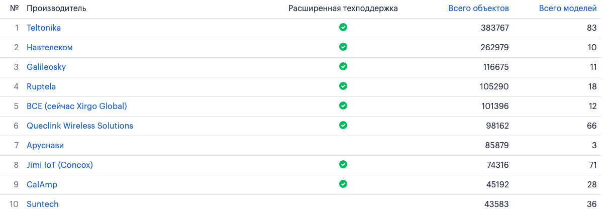 - Рейтинг производителей GPS/ГЛОНАСС оборудования