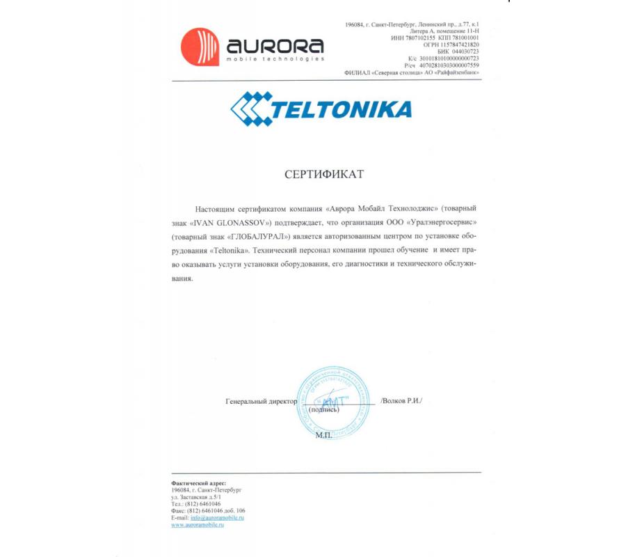 Наши сотрудники являются сертифицированными специалистами по системам спутникового мониторинга Wialon Hosting и ГЛОНАСССофт, что позволяет внедрять у своих Клиентов практически любые сценарии контроля транспорта и оптимизации использования транспортного парка. К тому же мы всегда рады оказать нашим клиентам консультацию как в онлайн режиме, так и в наших офисах, расположенных в г. Екатеринбург и Каменск-Уральский.
