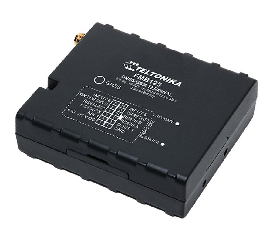 Teltonika FMB125 – данный терминал оснащён интерфейсами RS232/485, что позволяет подключать к нему различные цифровые датчики. Работа данной модели осуществляется в режиме реального времени – терминал получает координаты и передает их по GSM/GPRS-сетям.