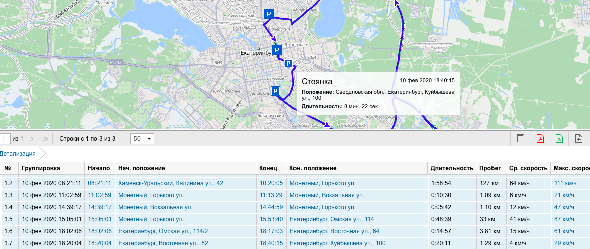 Для стоянок дополнительно указывается их продолжительность и адрес, где останавливалось транспортное средство.