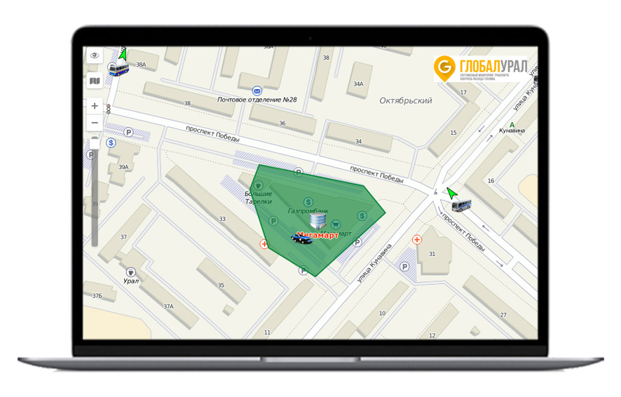 Геозоны представляют из себя произвольные области на карте, созданные пользователем системы мониторинга. Они служат с целью контроля за передвижением транспорта в этих областях или выхода за их пределы.