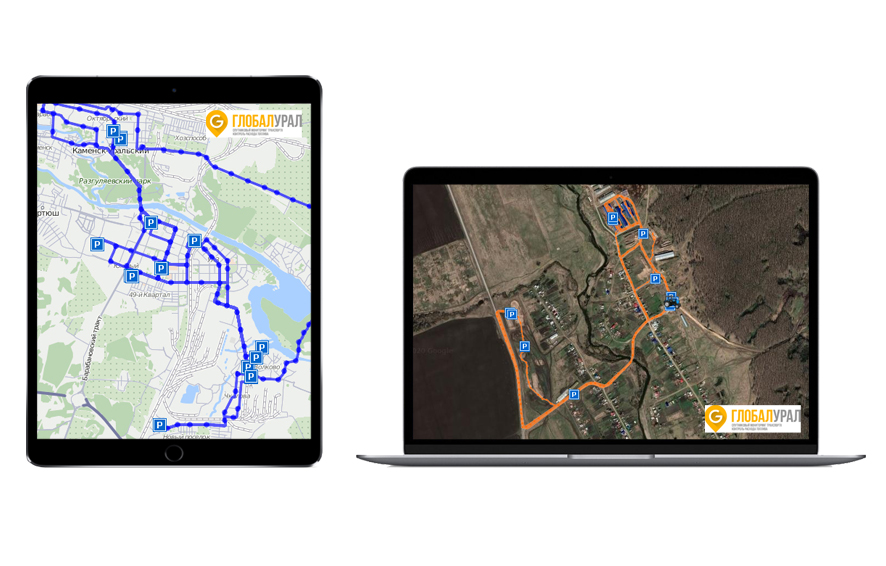 Трек перемещения может быть построен как по одному транспортному средству, так и по множеству других с накладыванием их друг на друга. Одновременно существует возможность изменения карт отображения, что значительно облегчает анализ движения транспорта.