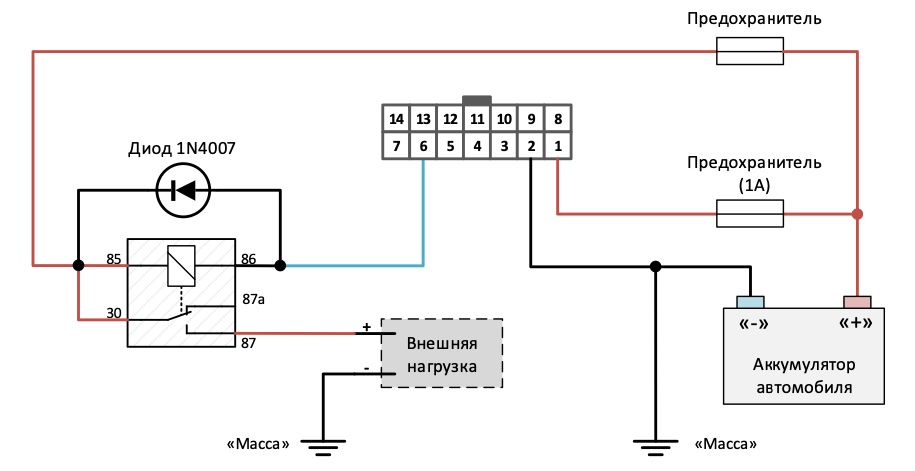 Подключение к GPS/ГЛОНАСС трекеру осуществляется с помощью проводного соединения на его выходные линии. Существуют беспроводные варианты реле блокировки, но они работают через считыватель сигнала. При необходимости комплект блокировки двигателя можно дополнить беспроводными радиометками водителя, что дополнительно обезопасит транспортное средство от доступа посторонних.