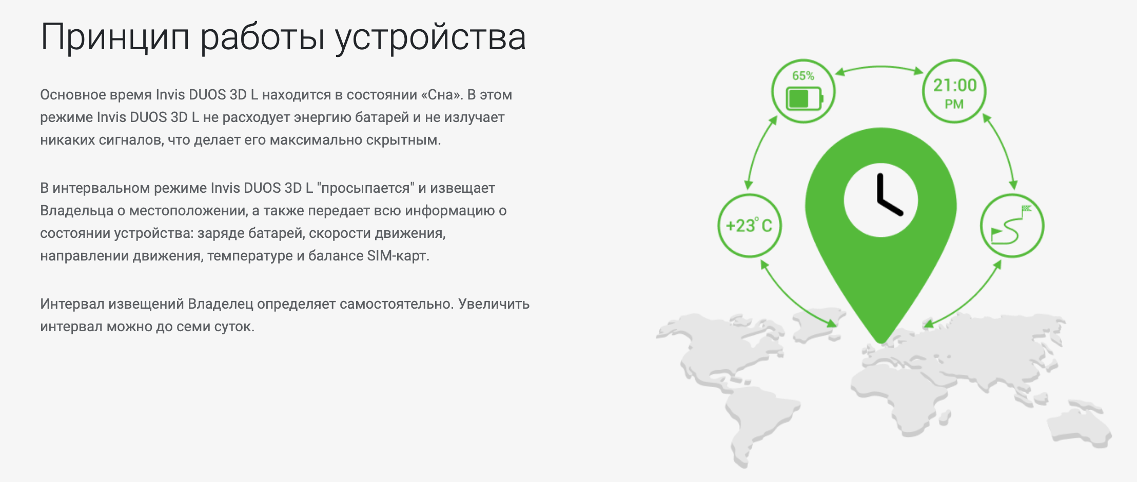 - • энергоэффективные, интеллектуальные режимы работы повышают шансы найти транспорт в случае угона;