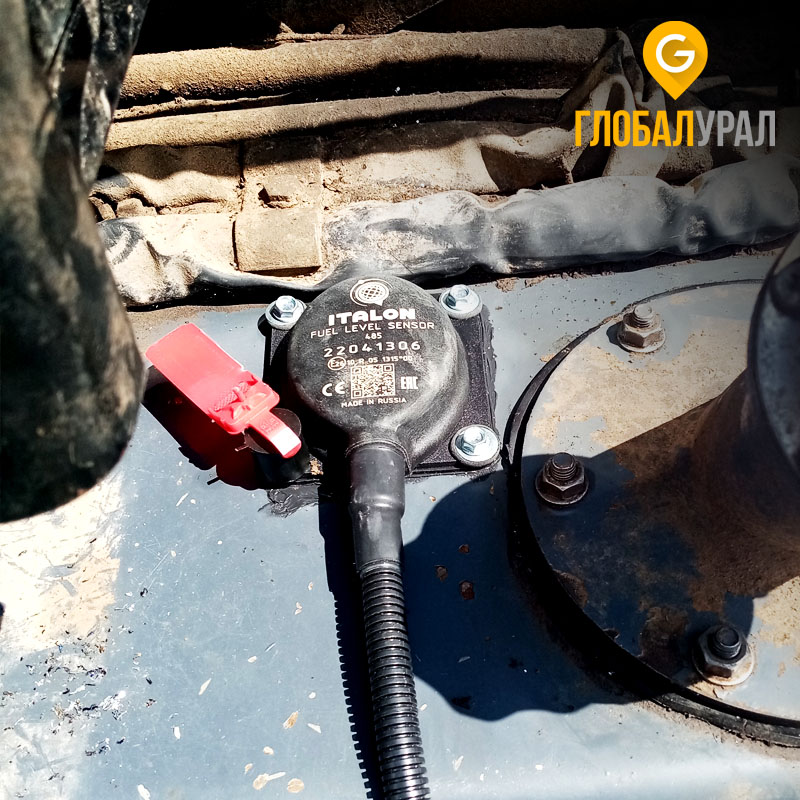 Датчик уровня топлива был смонтирован непосредственно в бак транспортного средства. Для этого было просверлено отверстие в его верхней точке рядом с топливной горловиной, проведена калибровка и настройка датчика. После установки датчика проведена тарировка топливного бака для повышения точности определения фактического объема топлива в баке и корректной фиксации заправок/сливов. Погрешность датчика уровня топлива составляет не более 1%. Он имеет защиту от внешних воздействий, защищен пломбировкой и работает по цифровому интерфейсу RS-485.